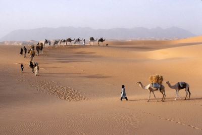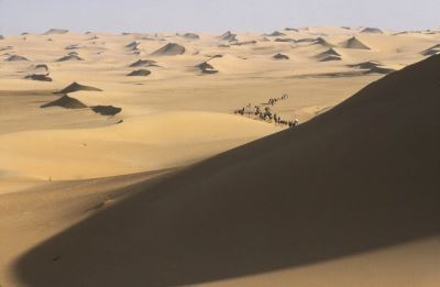 In the labyrinth of dunes, the guides know how to find the way to the well where they can get water for men and camels.