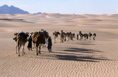 The caravan is about to enter a mineral universe that is no longer the world of men but that of an intact nature where only the nomads know how to survive.
