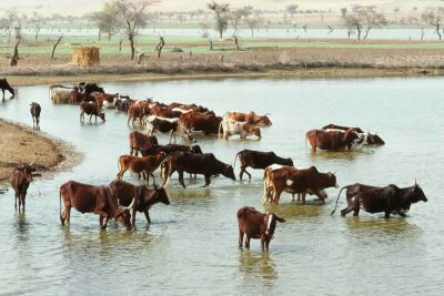 Eine Herde von Zebu-Kühen in der Region Abalak.