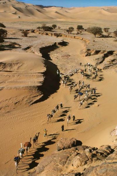 Im Morgenlicht, die Karawane im Wadi Temet.