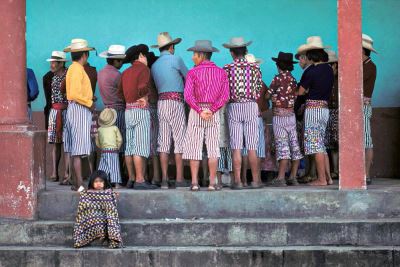 Die Stufen vor der Kirche Santo Tomas Chichicastenango (Guatemala) waren in erster Linie die eines präkolumbianischen Tempels. Es sind 18 an der Zahl, eine für jeden Monat des Maya-Kalenders. Diese Quiché-Frau bringt ihre Opfergabe an die christlichen Heiligen, hinter denen die Hauptfiguren der Maya-Mythologie stehen.
