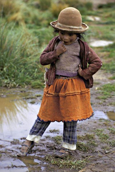 This Indian girl from Cajabamba (Ecuador) is a portrayal of the country, torn between tradition (hat, belt) and modernity (sweater, shall).