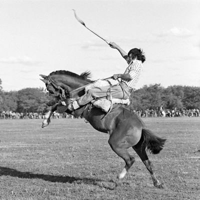Argentinische Gauchos, Cowboys aus dem Land von Uncle Sam, überall wo es Pferde gibt, da nimmt Maximilian Bruggmann Anteil am Leben dieser nach Raum und Freiheit lechzenden Menschen, die stolz und eins sind mit ihren Pferden. Es ist wie ein Wüstenwind, der um ihre Hüte bläst. Und eine Reihe von tiefen Affinitäten verbinden den Fotografen mit einem unbekannten, aber heroischen John Wayne: Einfachheit, Zuverlässigkeit, Ehrlichkeit, Mut und Selbstlosigkeit sind auf ihren Gesichtern zu lesen.