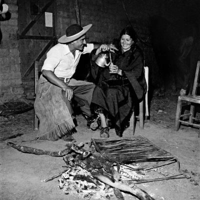 Das Leben der Gauchos ist von harter Arbeit, aber auch von ausgelassenen Festen geprägt. Anders als in der patagonischen Pampa sind dabei im Nordwesten Argentiniens die Frauen immer dabei. Das ist zweifellos ein Erbe des Unabhängigkeitkrieges, an dem sie massgeblich teilnahmen. Im Bild Arturo und Marion Fernández beim Mateteetrinken auf ihrer Finca in Campo Alegre, Provinz Salta.