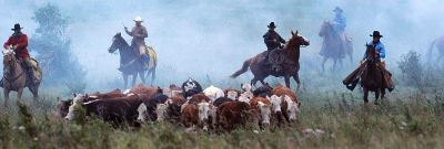 Beim Rodeo übte man ursprünglich - als die Steppe noch nicht mit Stacheldraht eingezäunt war -, die frei weidenden Rinder zusammenzutreiben und danach zu neuen Weidegründen zu geleiten. Diese Praxis hat sich zum Teil bis heute erhalten, so auf der Ranch Longview (Alberta, Kanada). Sie gehört Tom Bews, einem der berühmtesten Züchter, Cowboys und Rodeomen in Kanada.