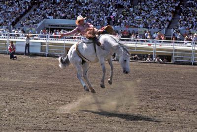 En la Estampida de Calgary (Alberta, Canadá), considerada el evento de rodeo más grande del mundo, los competidores del «Saddle Bronc Riding» deben resistir, sentados en su silla de montar, las patadas de un caballo salvaje durante ocho segundos sin tocar con su mano libre al animal desatado.