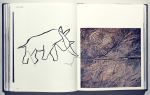 Oued Djérat (Tassili-n'Ajjer) - Dreifach-Spirale. Bei den beiden unteren Spiralen beginnen zwei entgegensetzte Linien im Zentrum. Die Arbeit wurde auf einer horizontalen Platte gefertigt.