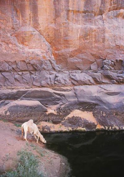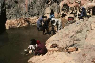 Provision d'eau pour hommes et chameaux dans la guelta de Takarit